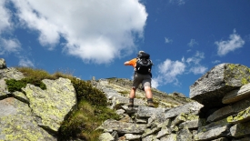 La descente commence. Le sentier est étroit et, par endroit, l’absence de végétation pour cacher le vide, stresse un peu Stefano.