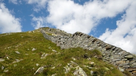 Certes, nous avons l’habitude, dans le Jura, des murs en pierres sèches. 300 mètres, ce n’est rien. Mais ici, au Pizzo Bombögn, le mur s’élève jusqu’à 2 mètres de hauteur et est conçu pour que l’on puisse marcher dessus.
