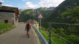 Nous voilà donc en route pour Cerentino, un petit village à l’est de Cevio, dans la Valle Rovana. On y accède par Linescio, après une belle série de virage en épingle à cheveux. Depuis Cevio, la route remonte la rivière Rovana, affluent de la rivière Maggia. Nous la traversons en contrebas de Cerentino où nous arrivons après un long détour. La route est étroite et deux voitures se croisent à peine. Par endroit même, une seule voiture ne passe.