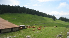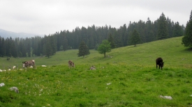 Aïe, aïe, quel démarrage ! Nous rentrons dans le vif de l’action sans guère avoir eu le temps de nous mettre en condition. La montée vers les Fruitières de Nyon est raide et après quelques minutes nous soufflons comme des bœufs (ou des cachalot si vous préférez).
