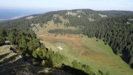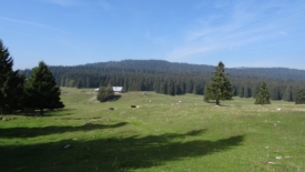 Nous contournons le Creux du Croue et empruntons le sentier qui monte au chalet Le Croue. Dommage qu’il soit un peu tard, nous aurions bien aimé pousser jusqu’au Crêt des Danses.