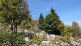 De là, nous nous dirigeons vers le Noirmont des Français, non sans passer à proximité d’un troupeau de brebis gardé par un patou (chien de berger). Il fait beaucoup de bruit et ne sachant pas trop comment réagir, nous contournons soigneusement le troupeau.