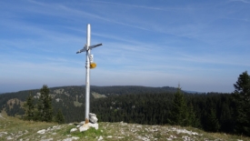 Noirmont des Français que voici. Nous constatons avec stupeur que la plaque où est inscrit le texte Noirmont des Français a été retournée et n’est plus vraiment visible, alors que ce n’était pas le cas lors de notre balade d’il y a pratiquement un an vers le Crêt des Danses.