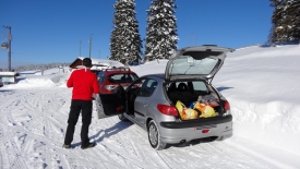 A 10h30 nous sommes à la Givrine et trouvons une place à moins de 20 mètres du départ de la piste. Troooooooooop bien.