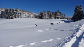 Étonnamment, nous ne sommes pas les seuls à avoir eu l’idée d’une sortie en raquettes.
