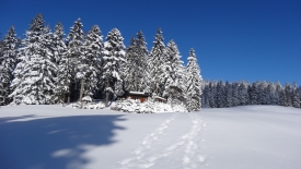Un petit chalet. Il semble être parfaitement dans son élément.