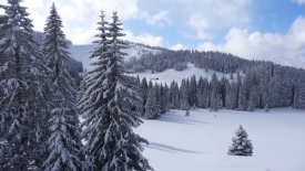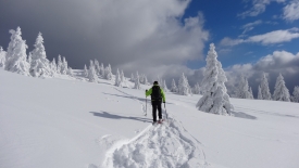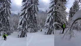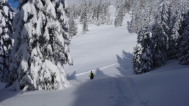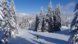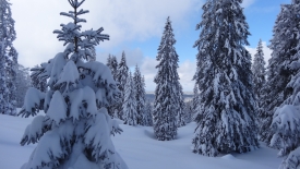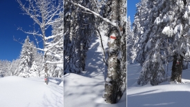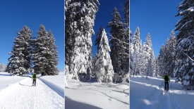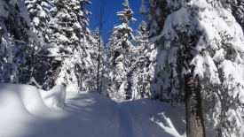C’est un enchantement. Les conditions sont idéales. La neige tombée récemment est très légère. Les arbres sont habillés de blanc.
