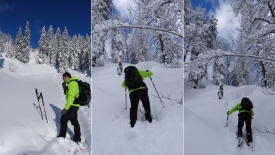 L’idée est d’arriver au Creux du Croue. Stefano quitte les traces et nous nous dirigeons vers la Combe aux Tassons. Heureusement que nous avions pris des forces… La montée est… rude.