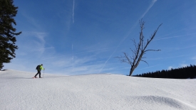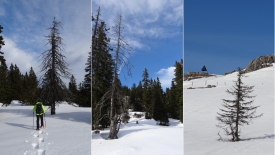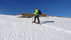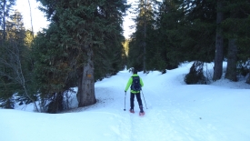 Croûtée par endroit, mais molle et lourde parfois, la neige s’incruste sous nos raquettes en les alourdissant soudain d’un bon kilo. Kilo qui nous accompagne durant les 3 ou 4 pas suivants, avant que la neige ne se libère.