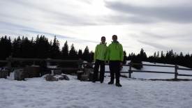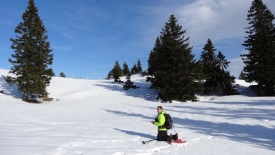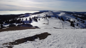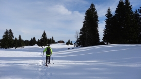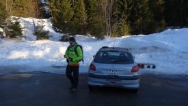 8h57, nous sommes prêts. Stefano vérifie les derniers détails sur le GPS. Pour ceux et celles qui nous suivent régulièrement, sans doute avez-vous reconnu le parking du col du Marchairuz, parking utilisé lors de notre dernière balade de l’année 2012 (le Mont Tendre).