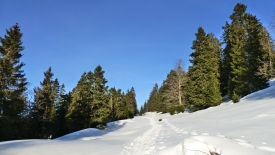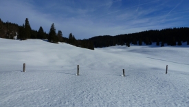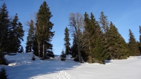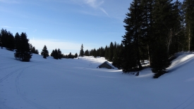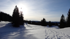 Un peu plus loin, un choix s’offre à nous : la version facile (le Mont Tendre via la Druchaux et la Pivette), la version un peu plus tchi-tchi (qui n’est par marquée d’ailleurs, c’est la 4ème direction). Mais comme tous les chemins mènent à Rome nous décidons de partir à l’aventure vers la 4ème direction qui n’existe pas.