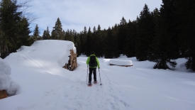 Nous longeons ainsi la crête et arrivons à la Pivette. Un groupe de skieurs de fond l’a investie et nous entendons leurs rires par les fenêtres ouvertes.