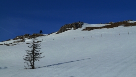 Le soleil tape de face. Facile de deviner l’état de la neige. Une véritable soupe de printemps. Stefano me dit : « le week-end prochain nous ne sommes pas là – eh oui, nous serons au Tessin. À ce train là, la neige aura disparu le week-end suivant ».