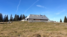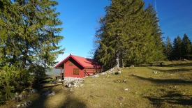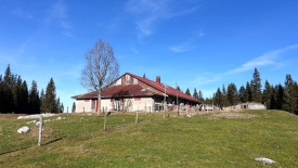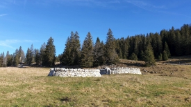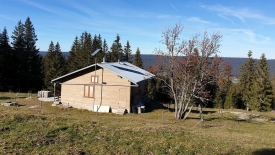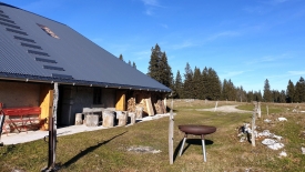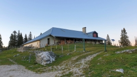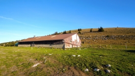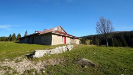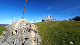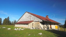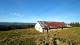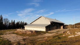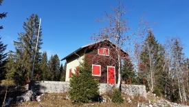 La zone bétonnée devant la porte de l’étable (qui fait donc partie de la zone non louée et donc libre d’accès puisque appartenant à la commune) se révèle trop exposée au vent et nous nous réfugions contre le mur sud. La bouche pleine, je propose une montée au Mont Tendre. La proposition est acceptée mais il faudra faire vite me dit-on.