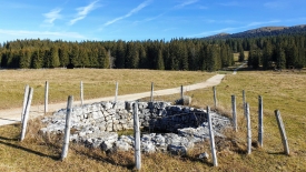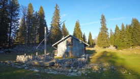Pour y aller, nous devons descendre en direction du village Le Brassus et traverser la route du col du Marchairuz.