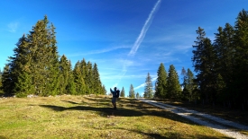C’est pourquoi, sitôt partis, nous montons en ligne droite vers le chalet de Pierre avant de retrouver la route qui nous amène à la buvette du Mont Tendre. Le sang qui coule dans mes veines a de la peine à choisir entre les jambes et l’estomac, plein, où il faut s’activer un peu.