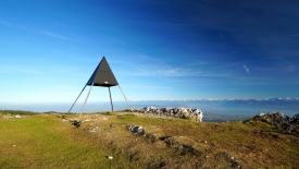 Vu depuis la buvette du Mont Tendre, où le parking est bien occupé, le point géodésique est noir de monde. Confinement oblige. Les magasins sont fermés et en plus il fait beau.