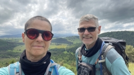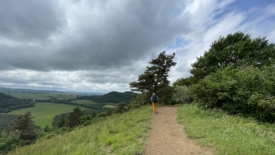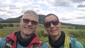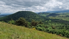 Nous voici pour une quinzaine de jour en Auvergne, au centre de la France, d’abord dans le Puy-de-Dôme puis, pour terminer, dans le Cantal. Aujourd’hui, à cause d’une météo capricieuse, notre balade se limite à l’après-midi. Nous ne voulons pas nous éloigner trop du camping pour pouvoir rapidement rentrer en cas de pluie. Stefano nous emmène découvrir le puy de Charmont et le puy de Vichatel.