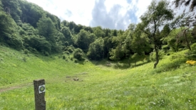 Qui dire du cratère ? Heu, rien, en fait ce n’est qu’une cuvette recouverte d’un pré, une zone d’estive où viennent paître vaches et moutons l’été.