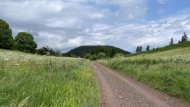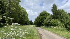De part et d’autre de la route, des arbres et des prairies. Les herbes sont hautes, très hautes même et les ombellifères dépassent allègrement les 1.50 mètres.
