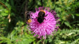 Parvenus à La Croisée, nous retrouvons notre trace du matin. Le silence s’installe. Nous nous concentrons, pour éviter de trébucher. La chaleur se fait pesante, presque étouffante. Mais comme tout est une question de temps, et le temps nous en avons, nous arrivons finalement à la voiture, bien cuite par le soleil, super contents de notre excursion en France. A moins d’une heure de la maison, nous avons été réellement dépaysés !