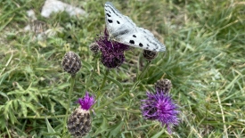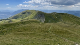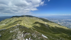 Même si l’horaire convient, l’idée de nous arrêter manger ne nous traverse même pas l’esprit. Le moindre recoin, replat, est occupé par des familles. Nous partons donc sur la crête, en direction de notre prochain sommet, de 2 mètres plus petit que son grand frère : Le Reculet.