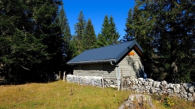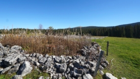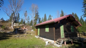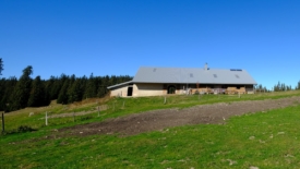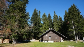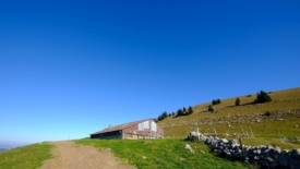 Nous traversons un petit bout de forêt et arrivons sur un autre pâturage. Un chalet sert de citerne, ou vice-versa. En tout cas, l’association semble efficace et le chalet est de taille raisonnable, en superbe état. Son petit nom : La Citerne du Buron.