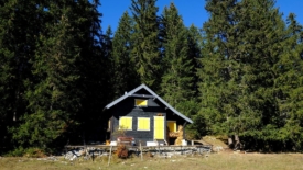 Le chalet de la Bûcheronne. Un sentier part sur sa droite mais il s’arrête très vite, devant une porte de toilette.