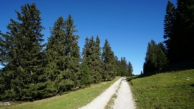Nous suivons une route goudronnée. Une première. De route goudronnée, elle devient une piste avec deux ornières goudronnées. Puis un chemin forestier qui nous amène aux Mont de Bière Derrière.