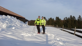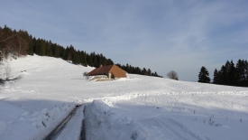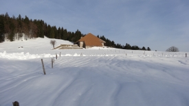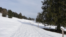 Les affaires sont prêtes, les sandwichs itou. Il n’y a plus qu’à rentrer, se changer avant de repartir. Aujourd’hui, c’est un peu l’inconnu. Le temps s’est radouci, 8° au thermomètre à 10 heures. Raquettes ou pas raquettes ? Bah, nous chargeons la TSH mobile avec tout le matos, nous verrons bien. Direction Arzier et la route qui mène aux Orgères.