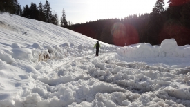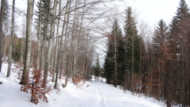 Route des Bioles qui d’ailleurs a été maltraitée par des tracteurs ou autres engins agricoles. La neige a fondue et même en raquettes, elle est à peine praticable.