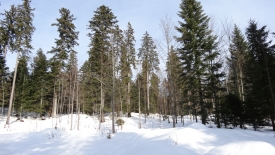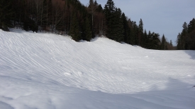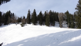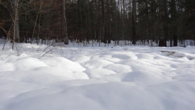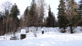 Même avec le redoux et la pluie, la couche de neige est encore importante. En témoignent ces troncs coupés et coiffés.