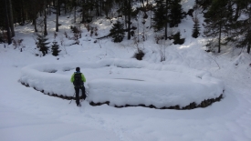 Nous croisons un promeneur qui comme nous s’interroge… Les traces sont-elles destinées aux randonneurs et est-ce simplement un local qui s’est fait plaisir ? En tout cas, mille merci. Nous en profitons pleinement.