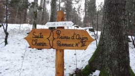 Nous rejoignons au panneau n° 3 le sentier spirituel d’Oujon. Panneau proposant une réflexion intérieure sur la solitude, le suivant sur le silence.