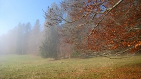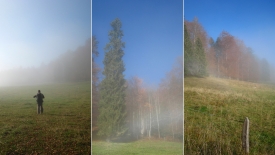 Nous ne sommes pas montés pour rien… Petit à petit le brouillard se déchire. Et bientôt, nous avons droit à quelques trous de ciel bleu.