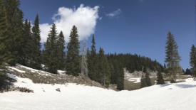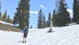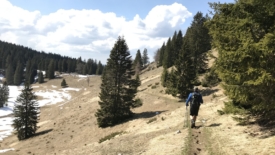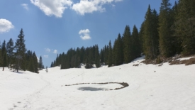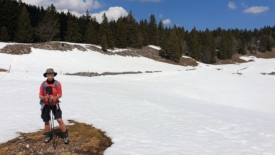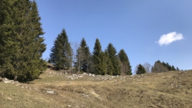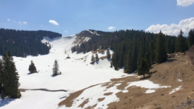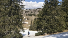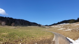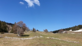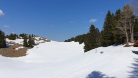 … avant de retrouver un pâturage sur lequel subsiste les restes d’une piste de ski de fond. La neige est là.