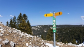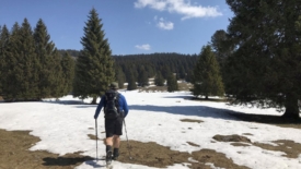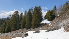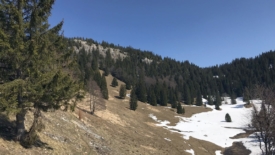 Malgré la neige très présente, très belle randonnée à pied qui, depuis la Givrine, nous mène au Croue puis au Noirmont des Français pour revenir par Les Copettes et Le Sollier. Le printemps est bien installé et la flore commence à émerger. Nous aurons le bonheur de voir détaler un lièvre du Jura.