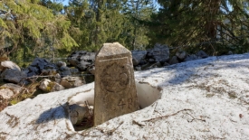 Nous retrouvons la borne avec la fleur de lys qui témoigne que, dans des temps pas si reculés, à savoir jusqu’à la signature du Traité de la vallée des Dappes, le 8 décembre 1862, une partie de ces terres se trouvaient en territoire Français.