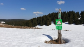 Au moins, là, c’est clair : interdiction de skier (descente ou nordique), de faire du snowboard et de la raquette. C’est clair, certes, mais c’est désespérément petit : l’hiver, avec la neige, les sentiers disparaissent et rien ne garantit que le randonneur passe suffisamment près pour se rendre compte de l’interdiction.