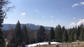 Il est un peu plus tôt qu’hier lorsque nous nous garons à La Givrine, tout près de l’arrêt du NStCM (le petit train qui dessert Nyon, St-Cergue et La Cure). En ce samedi de Pâques, plus de 10 voitures nous ont précédés.
