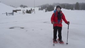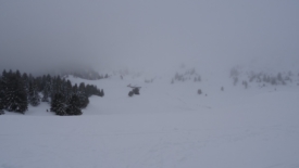 Nous quittons la maison vers 10h et partons pour St-Cergue, le point de départ obligé pour une montée à La Dôle en raquettes. Nous essuyons quelques gouttes de pluie sur la route et lorsque nous sortons de la voiture, le brouillard est à quelques mètres au-dessus de nos têtes et il neigeote. Tout est dit.