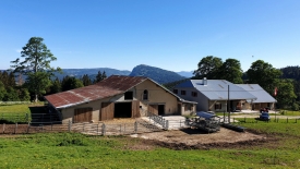 Nous coupons à travers champ pour rejoindre le Gîte à Doda. Datant de 1946, il fait figure d’ancêtre parmi tous les chalets privés que nous connaissons.