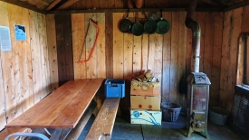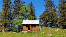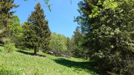 Tout à côté, il y a un autre chalet, qui, même sans nom, doit être béni des dieux : il a été épargné par la chute d’un arbre. Il s’en est fallu de peu : moins d’un mètre.