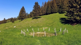 Il s’arrête pour nous demander si nous sommes perdus. C’est le berger des chalets Le Mazel et Le Bucley. Nous en profitons pour lui demander le but des travaux. Pour construire une fosse à purin, nous dit-il.