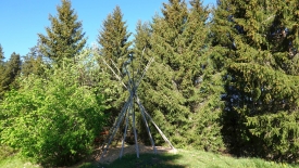 Bon, ben, voilà ! Nous sommes retournés au village des Tipis. Notre balade pourrait s’arrêter là mais… il est vraiment trop tôt pour rentrer. A peine 8h58.