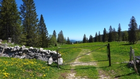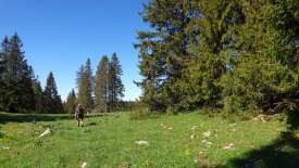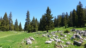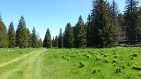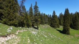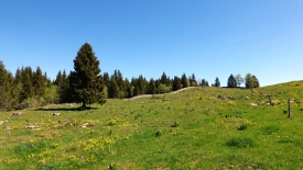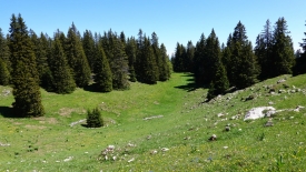 Nous continuons dans le pâturage qui, de pâturage n’aura bientôt que le nom à en juger par le nombre de petits sapins qui peu à peu occupent le terrain.