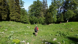Nous descendons à travers la forêt vers le Pré de l’Haut Dessus. Le sentier est approximatif.