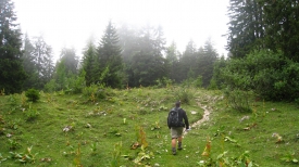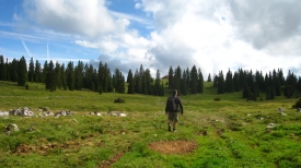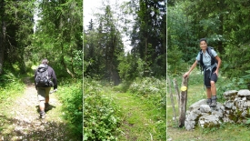 Aujourd’hui, il fait beau, pas trop chaud si l’on en juge les bras couverts de Stefano (1). La végétation est luxuriante (2) et j’enjambe un fil de fer barbelé les yeux quasi fermés, tellement facile (3) !