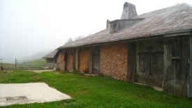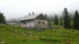 Le pâturage Des Loges abrite tout plein de chalets, par forcément destinés à l’exploitation laitière. Là, il y a un barbecue que se prépare, malgré le temps.