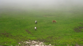 Les chevaux ne sembles par dérangés par le brouillard qui descend.